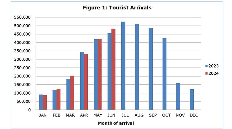 Arrivals from the UK were the main source of tourism for June, with a share of 35,6 percent (171.704) of total arrivals, followed by Israel with 10,7 percent (51.814), Poland with 7,5 percent (36.202), Sweden with 4,9 percent (23.639) and Germany with 4,5 percent (21.552).